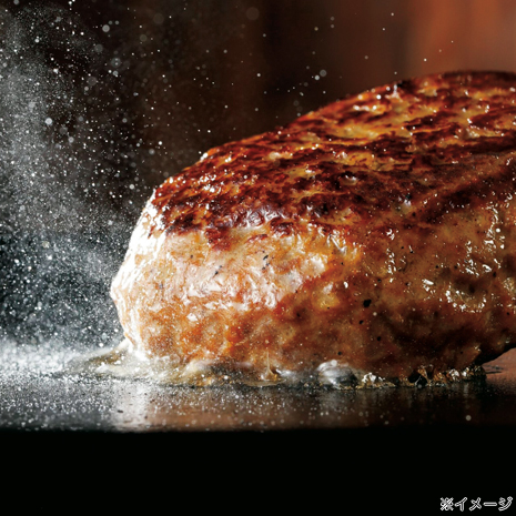 ほぐれ感・焼きたて感を再現したビーフハンバーグ。鉄板焼で肉汁を閉じ込め、食べた時の肉汁あふれるビーフ100%のハンバーグです。