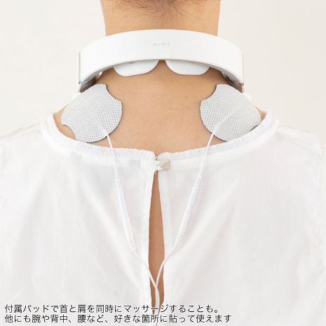 首と肩を同時にマッサージできるパッドつき。肩だけでなく、腕や背中、腰など、好きな箇所に貼って使えます。