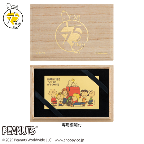 PEANUTSコミック誕生75周年を記念して製作された純金のカードです。