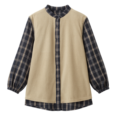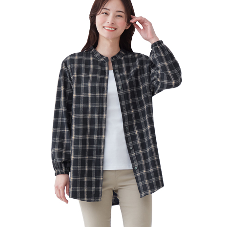 単品)<セルヴァン>あったか裏フリースロングシャツ