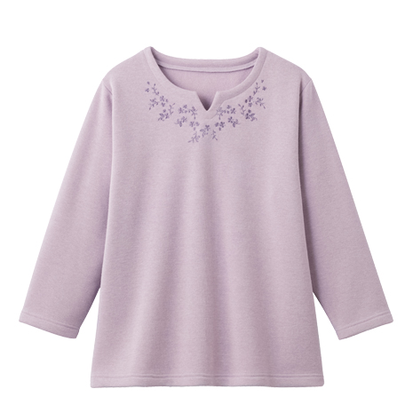 同サイズ2色組)<セルヴァン>裏起毛花柄刺しゅうプルオーバー