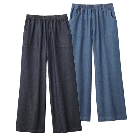 同サイズ2色組)デニムワイドパンツ