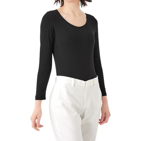 クロッチ部分をスナップボタンで留める仕様になっているので、裾がめくれ上がらずに身体にフィットしやすいです。背伸びしたり、かがんだりしても背中やお腹が出ないので冷えにくいです。伸縮性がよく着心地らくらく。裏起毛であたたかいので寒さが厳しい季節に役立ちます。