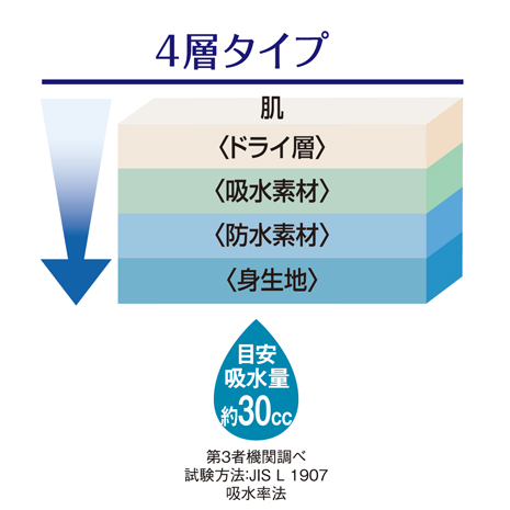 ※吸水量表示はおおよその目安です。使用状況によって吸水量が異なる場合がございます。