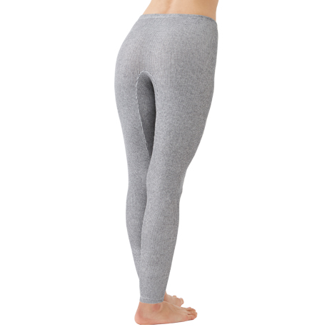 冷え対策におすすめの備長炭シリーズ。ヨコ方向によく伸びるリブ編みで、嫌な締め付け感が少なく、身体にフィットします。下半身全体を包み込む安心の10分丈パンツです。