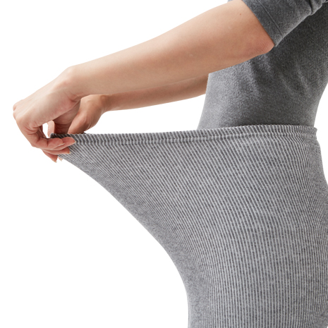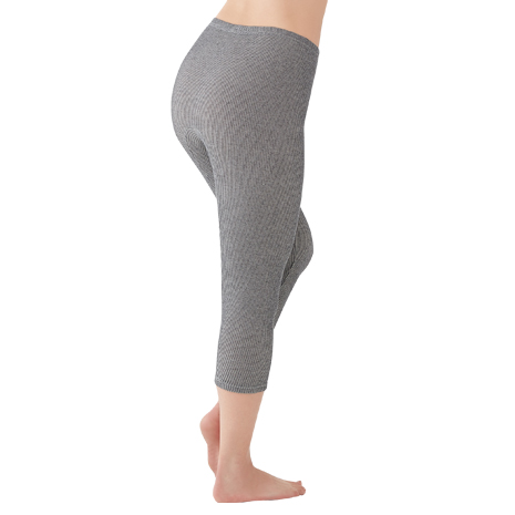 冷え対策におすすめの備長炭シリーズ。ヨコ方向によく伸びるリブ編みで、嫌な締め付け感が少なく、身体にフィットします。あたたかさと動きやすさを両立させた7分丈パンツです。