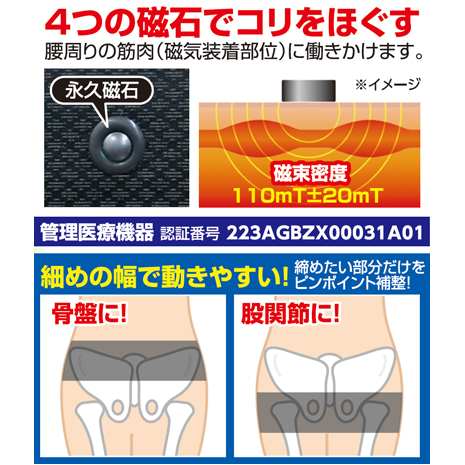 ・ベルト内側に装着された4つの磁石でコリと血行を改善