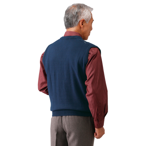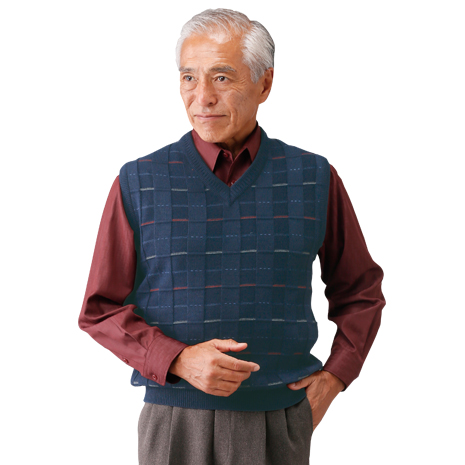 日本製ならではの丁寧な編み込みのベスト。立体的な編み柄が高級感を感じさせるウール混ベストです。ソフトな風合いの、洗濯機で洗える毛混素材で快適な着心地。前身頃にはさりげない配色が、お洒落なアクセントになっています。