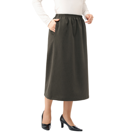 裾にかけてふんわりと広がるAラインのシルエットが、やさしい表情を演出するスカート。細かな千鳥柄の表情が豊かで、装いに奥行きを添え上品な印象を与えます。普段使いにもお出かけにもお使いいただけます。発熱素材に裏起毛で、寒さ深まる季節にうれしい要素がつまっています。