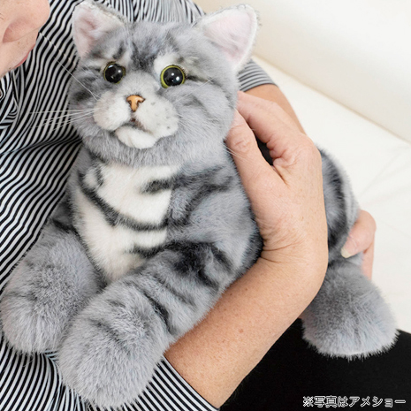 「なでなでねこちゃん」は、ねこのぬいぐるみの内部に、スマートフォンのパネルに活用されている静電センサーを頭やあご、背中・尻尾の4カ所に配置しました。今までのスイッチとは違い撫でると触るの違いを感知して鳴き声を変えます。本物の猫の声を録音していて、まるで猫を飼っているような気持ちになります。頭センサーを撫でられると「にゃ~」。触られると「にゃ~ぉ」。あごセンサーを撫でられると「ごろごろ」続けると「すやすや」。背中センサーを撫でられると「みゃ~ぉ」触られると「なぁ~ぉ」。尻尾センサーを撫でられると「ニャン!」続けると「うゎ~ぅ」と鳴いて、リアルなねこちゃんです。