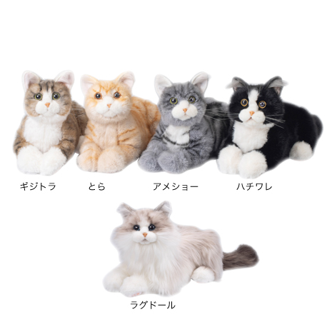 「なでなでねこちゃん」は、ねこのぬいぐるみの内部に、スマートフォンのパネルに活用されている静電センサーを頭やあご、背中・尻尾の4カ所に配置しました。今までのスイッチとは違い撫でると触るの違いを感知して鳴き声を変えます。本物の猫の声を録音していて、まるで猫を飼っているような気持ちになります。頭センサーを撫でられると「にゃ~」。触られると「にゃ~ぉ」。あごセンサーを撫でられると「ごろごろ」続けると「すやすや」。背中センサーを撫でられると「みゃ~ぉ」触られると「なぁ~ぉ」。尻尾センサーを撫でられると「ニャン!」続けると「うゎ~ぅ」と鳴いて、リアルなねこちゃんです。