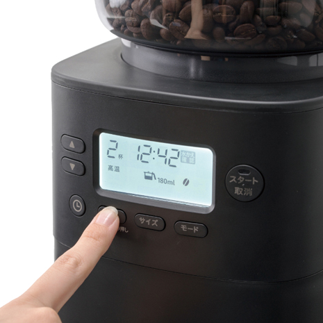 挽き目ごとのひき時間設定や、ミル単独で使えるミルのみモードを搭載。