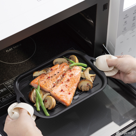 軽量なアルミ製。フッ素加工で汚れ落ちスルリ!オーブン、魚焼きグリル、オーブントースターでそのまま調理可能。