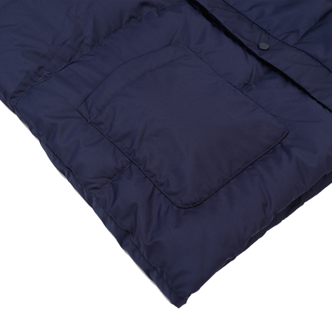 ■素材:生地/ポリエステル100%、中わた(本体)/ホワイトダックダウン50%・フェザー50%、(前立て・襟部分)/ポリエステル100%、(ポケット部分)/ポリエステル100%