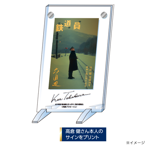 映画「鉄道員(ぽっぽや)」の名シーンを「純金カード」で再現し、表面には高倉健さんの直筆サインがプリントされています。