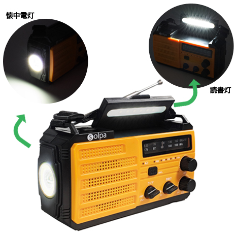 2台同時にスマホ充電可能)、懐中電灯(3段階で調整可能)、読書灯(2段階で調整可能)