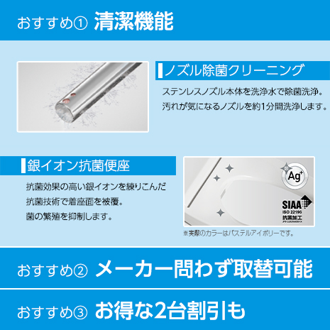 ◇今、お使いの温水便座のメーカーを問わず、普通の便座からでも取り換え可能。