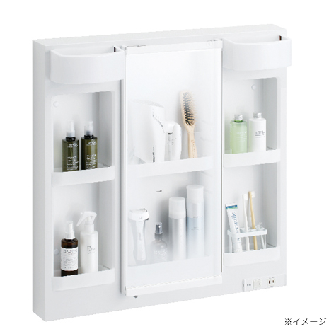 ・コンパクトでもたっぷり収納できる「鏡裏収納」付き。