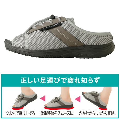 ●まるでスニーカーのように楽に歩ける独自構造、サッと履けてぐんぐん歩ける
