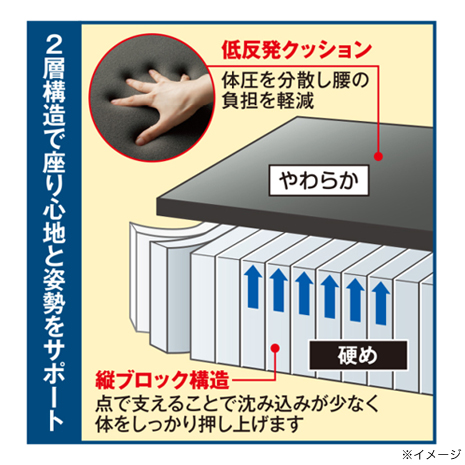 ●縦型ブロック構造が沈み込みを抑え、へたりにくく体をしっかり支えます。