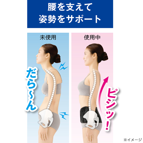 ●×に重なったクロスベルトが下腹を押えて骨盤を安定。正しい姿勢に導きます。