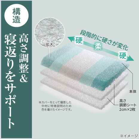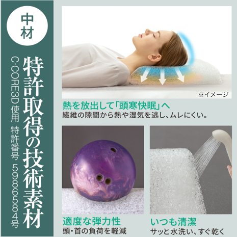 ●ソフトなのに沈み込み過ぎず頭を包んで首を支える体圧分散に優れた高反発素材。