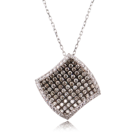 ブラックメッキにブラウンダイヤを留めクールな印象で立体的なフォルムが胸元を引き立てます!