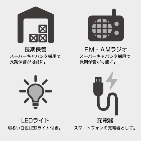 いざとういう時にちゃんと活躍します。長期保管にピッタリなラジオです。
