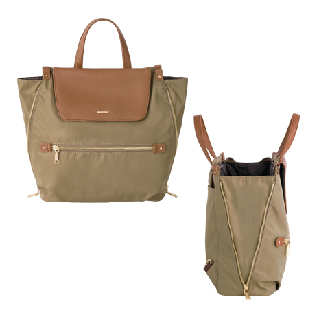 光沢感のある上品な佇まいの2WAYリュック。リュックひもは背面に収納出来て、手提げ時に便利。