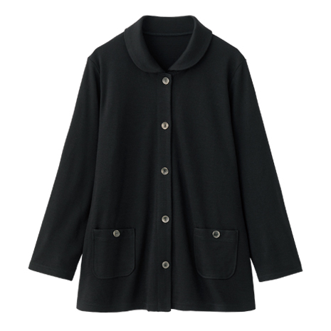 丸みのあるショール襟が優しい印象を与えるシンプルなジャケット。やわらかな肌ざわりのカットソー生地を使用しているので肘の曲げ伸ばしもしやすく、着心地の良い一着です。ウール入りなのでこれからの季節におすすめです。ボタン付きのポケットも、さりげないアクセントに。