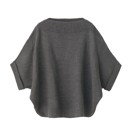 スポッとかぶってお洒落に体形カバーを叶えるドルマンスリーブのプルオーバー。顔まわりは編地を切り替えることでメリハリがついた印象に。やわらかなニット素材のため、肌触り・着心地の良さもポイントです。
