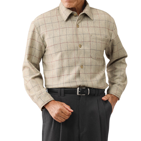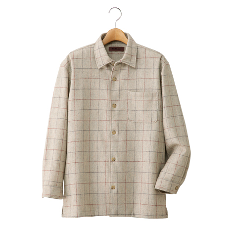 伝統の尾州織で織り上げた格子柄の上品なメンズシャツです。羽織物としてもお使いいただけます。着こむほどに愛着が増すアイテムです。