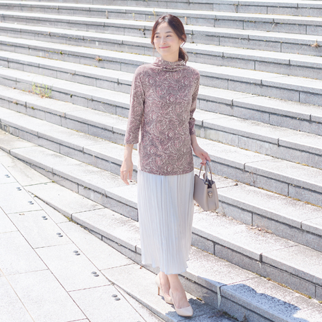 華やかなペイズリー柄の7分袖カットソー