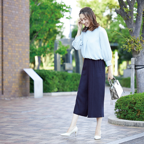 (単品)<セルヴァン>麻混リラックスワイドパンツ