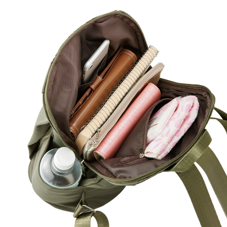 ●天ファスナーは大きく開くから中身が確認しやすく、出し入れもラクラク。