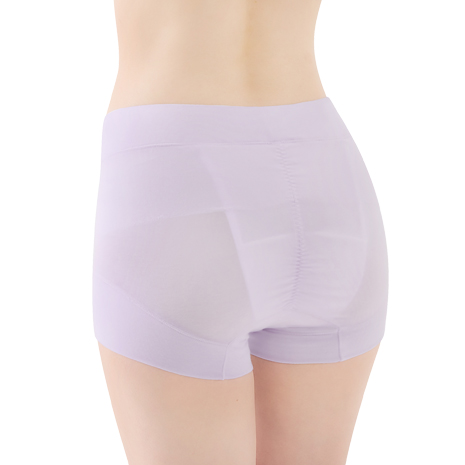 軽失禁対策ショーツです。吸水パッドを前後のパワーネットで吊るすハンモック構造にすることで骨盤底筋を下からサポート。骨盤まわりにもパワーネットを使用した快適な引き締め感で、肌ざわりのいい綿混ストレッチ素材です。