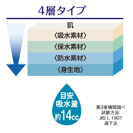 ※吸水量表示はおおよその目安です。使用状況によって吸水量が異なる場合がございます。