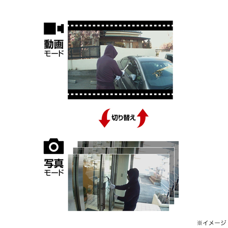 侵入者やストーカーを感知するとその場でmicroSDカードに自動録画します。