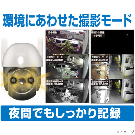 夜間カラーモード撮影:高輝度LED搭載で暗闇でもカラー録画。
