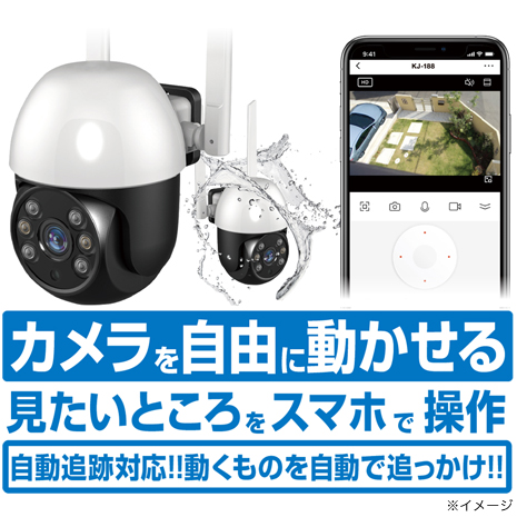 ●外出先からスマホで映像を確認できる、首振タイプの防水対応スマートカメラ。