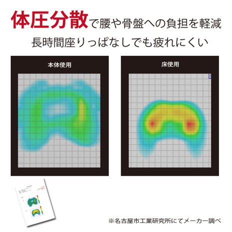 ☆低反発と硬質ウレタンの組み合わせが沈み込みを抑え、座骨や腰の負担を軽減し長時間座っても疲れにくく。