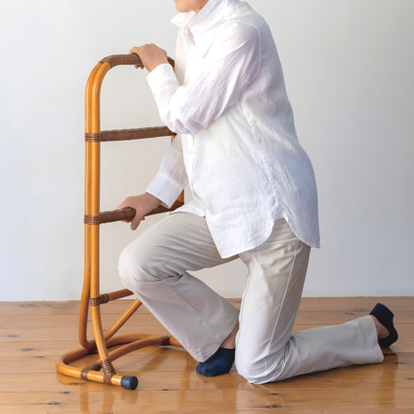 寝室でベットから立ち上がる際や、玄関の段差の昇り降りなどに使用していただけます。素材はラタンを使用して約1.5kgと軽いため、家中どこへでも持ち運ぶことが可能です。この補助スタンドは、職人がラタンでしっかり編んであるので軽く丈夫なのも特徴です。