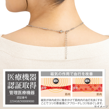 ●磁気ネックレスに見えないデザインでさりげなくコリ対策出来る。