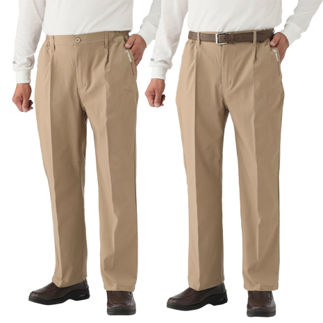 ■仕様:左右ポケット2、右後ポケット1、右前コインポケット1、ウエスト脇ゴム、前あきファスナー(ボタン開き)