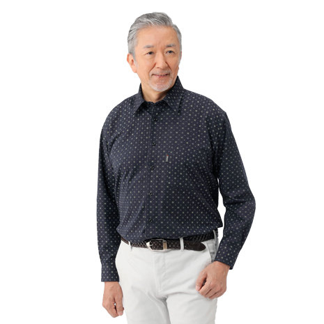 綿100%の優しい肌ざわりの小紋柄シャツ