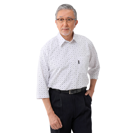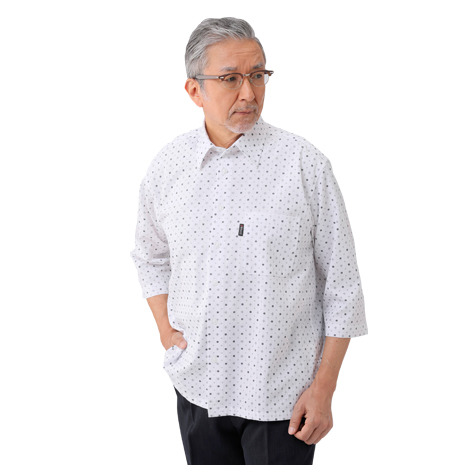 優しい肌ざわりの小紋柄7分袖シャツ