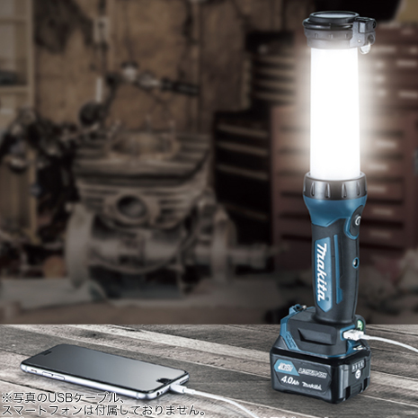 10.8Vスライドバッテリ採用、軽量&高輝度LEDライト、USB機器が充電可能です。