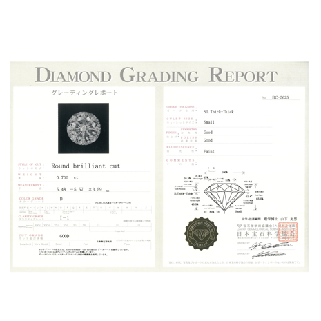 その上、ダイヤの輝きに重要な「カット」はGOODグレード!