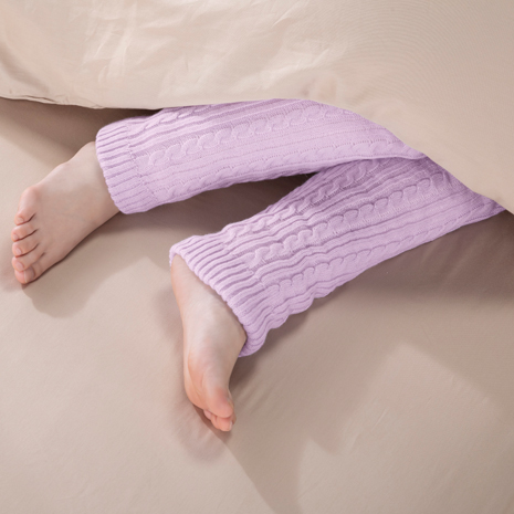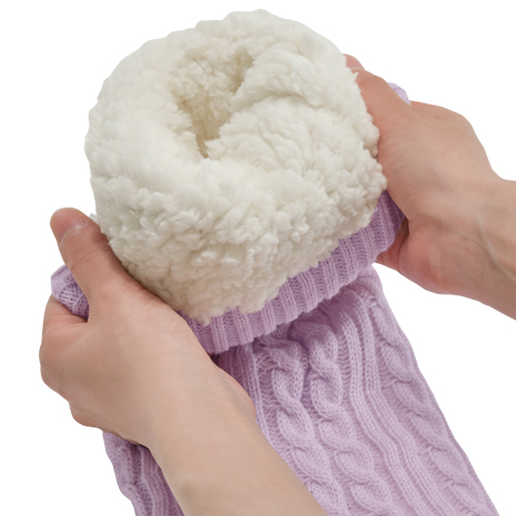 内側がふわふわとしたボア素材のふくらはぎウォーマーです。ひざ下から足首までのロング丈で、ふくらはぎをすっぽりとカバーできる丈感です。履き口が伸びのあるリブ編みでゆったりとしているので、長時間履いても疲れにくいです。