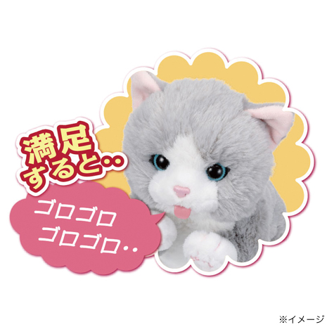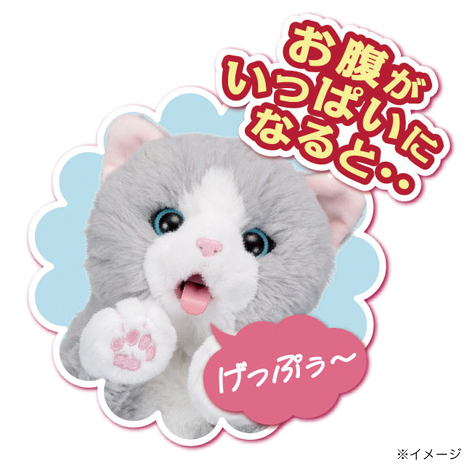 ねこちゃんの口元にちゅーるを近づけると、舌を出してペロペロしてかわいいです。CMで聞いたことのある曲が流れて、お子さんが楽しめる事間違いなしです。おなかいっぱいになると、げっぷぅ~とげっぷをしたり、おしりをトントンすると甘えた声でないたりします。